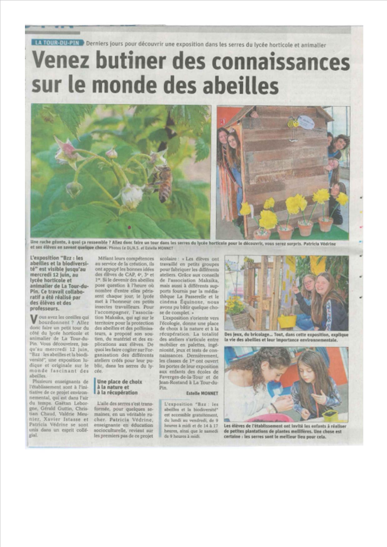 Dauphiné Libéré du 06/06/2019 Venez butiner des connaissances sur le monde des abeilles