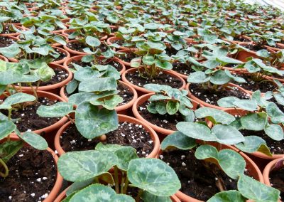 Dans les serres, pendant que les surfinias et bégonias (big ou dragon) nous ravissent de leurs couleurs rouge ou rose, les bébés chrysanthèmes et cyclamens se font pouponner par Amandine et Julien. Et oui ! Nous pensons déjà aux fleurs d’automne.