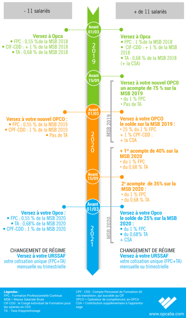 Le montant du 13% se calcule sur la base de la Masse Salariale Brute (MSB) 2019. C’est-à-dire, 13% de 0.68% de la MSB 2019. Ce calcul équivaut à 0.08% de la MSB 2019. Vous lirez sur certaines publications que 0.60% de la MSB2020 est à destination des OPCOs et 0.08% de la MSB2019 est à verser aux organismes de formation.